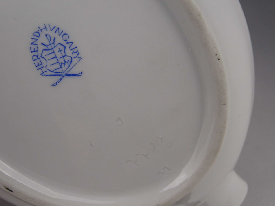 Hibátlan állapotú, kétállásos Viktória mintás Herendi porcelán tál, tálka, hamutartó. Aranyozása kopottas.