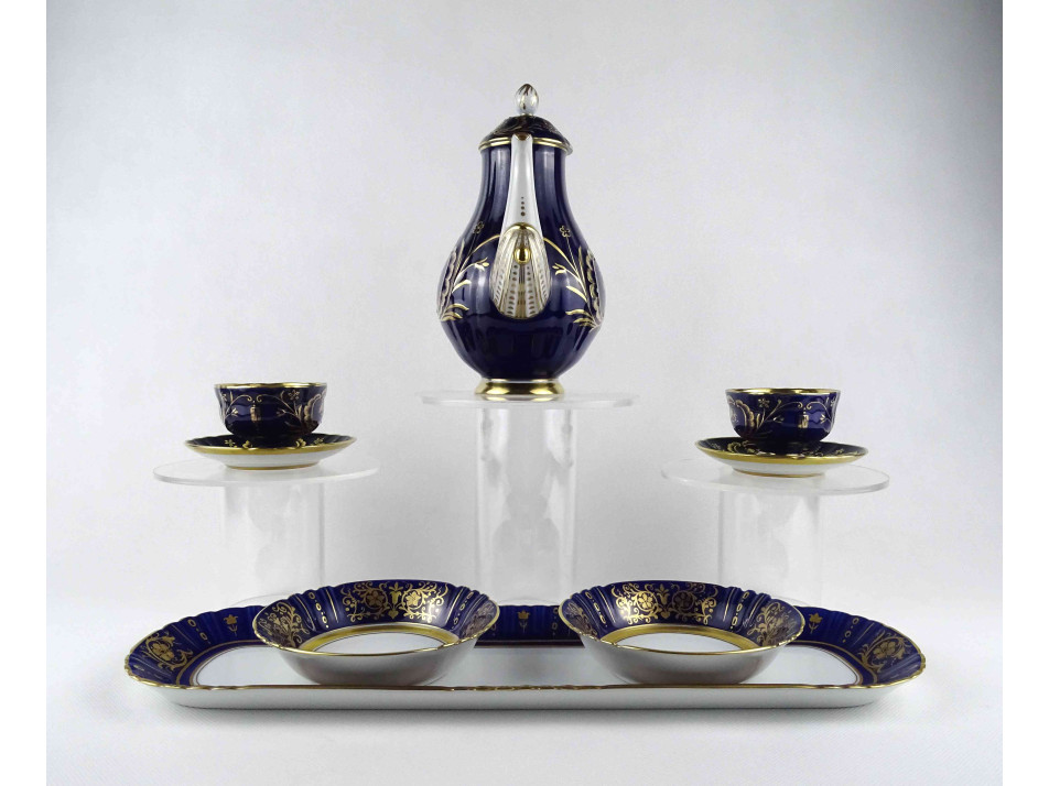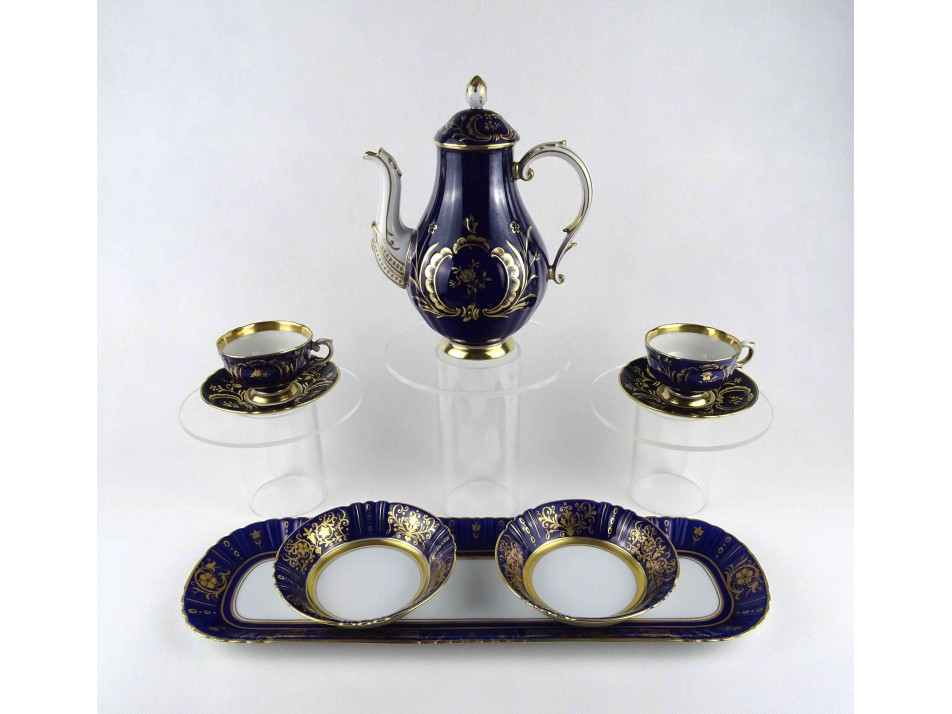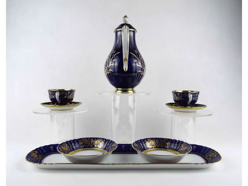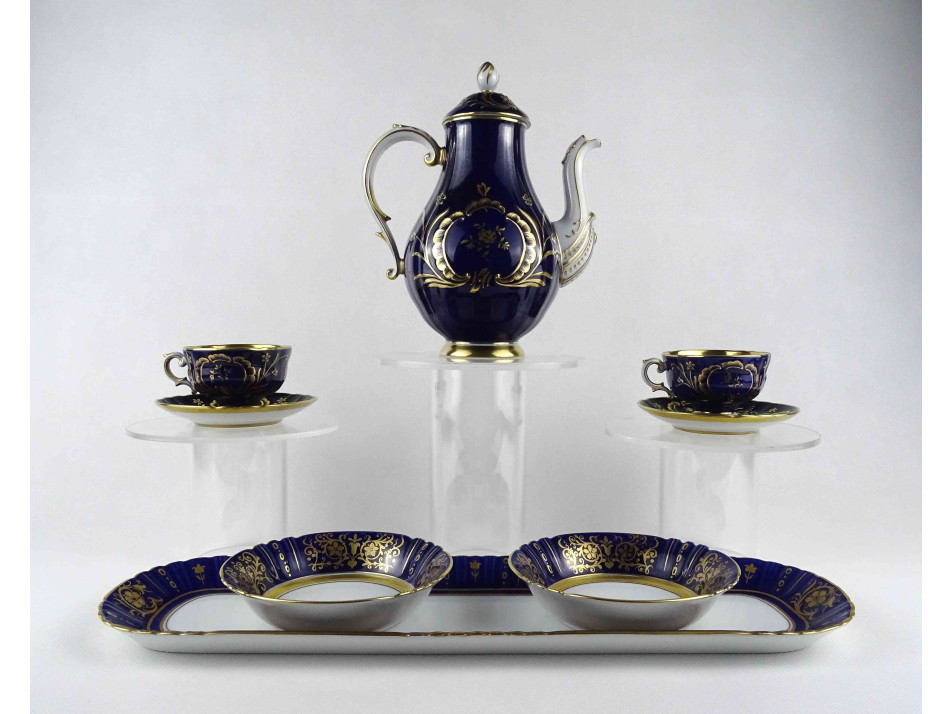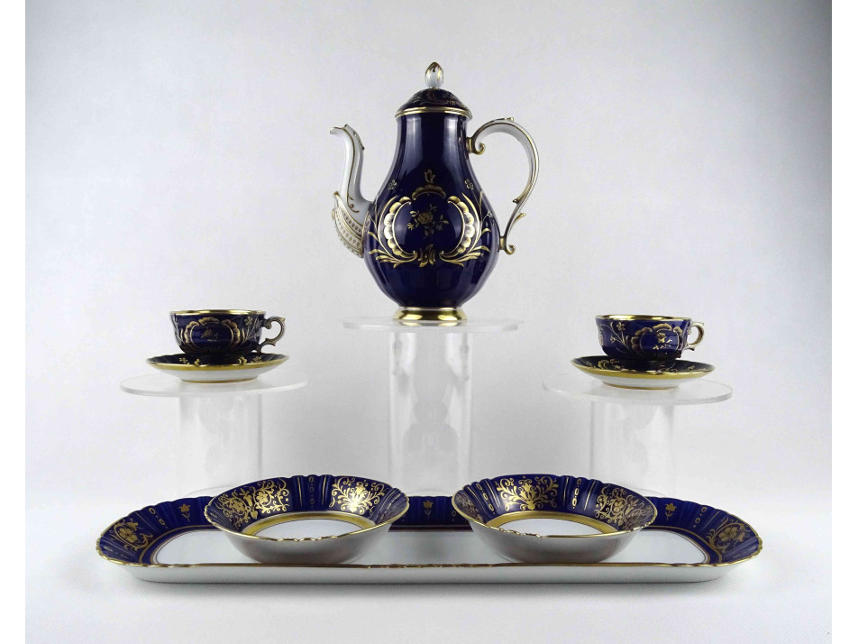 Két személyes reggeliző, kobaltkék arany mintás Herendi porcelán kávéskészlet
