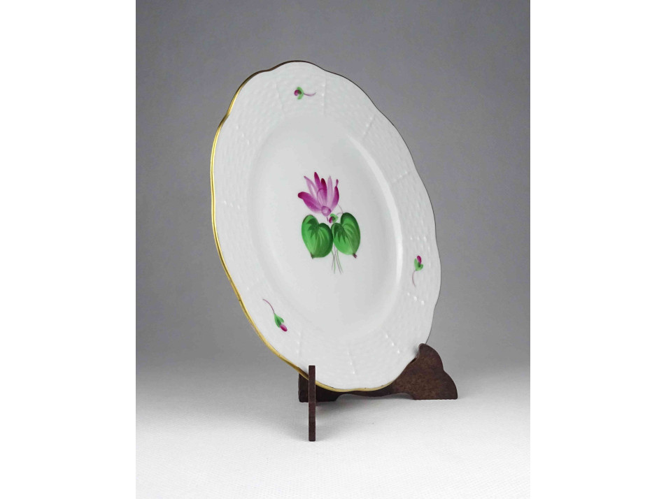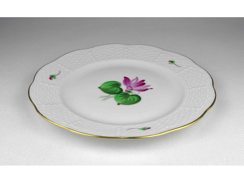 Régi, virágmintás, arany szegélyes Herendi porcelán kistányér, süteményes tányér.
