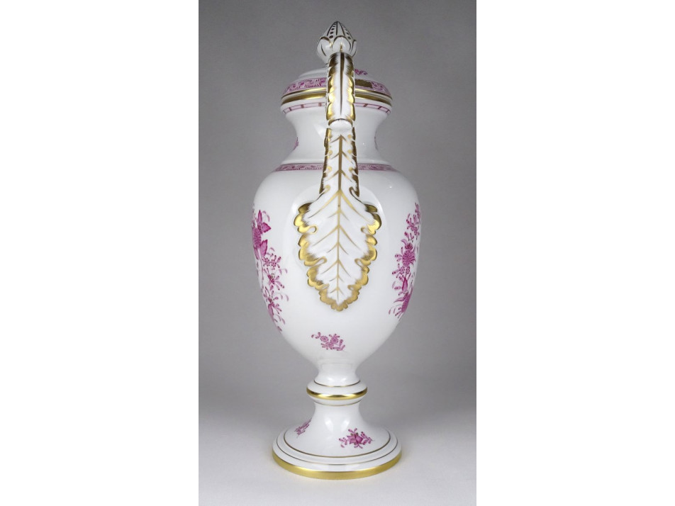 Hibátlan állapotú, dúsan aranyozott rózsaszín indiai kosár mintás nagy méretű Herendi porcelán urna, váza.
