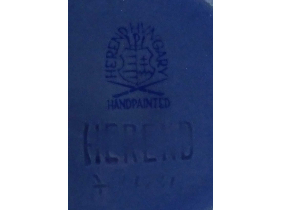 Régi kék alap mázon fehér plasztikus harangvirág mintás hibátlan állapotú, Herendi váza, szálváza, ibolyaváza.