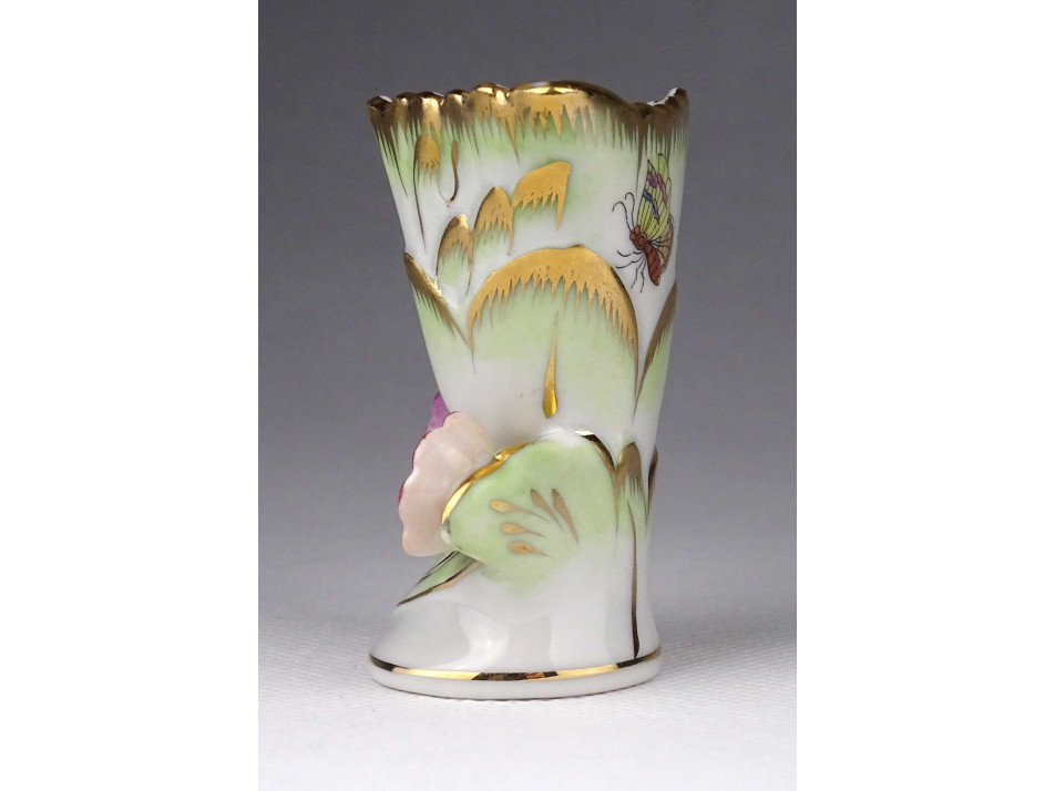 Régi, kisméretű Viktória mintás Herendi porcelán váza, ibolyaváza.