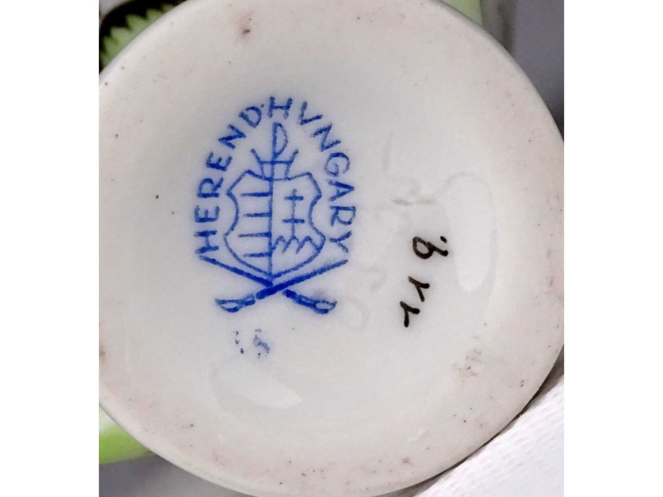 Régi jubileumi jelzéses Herendi porcelán bonbonier nyuszis virágos tetővel 12 cm