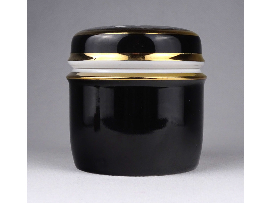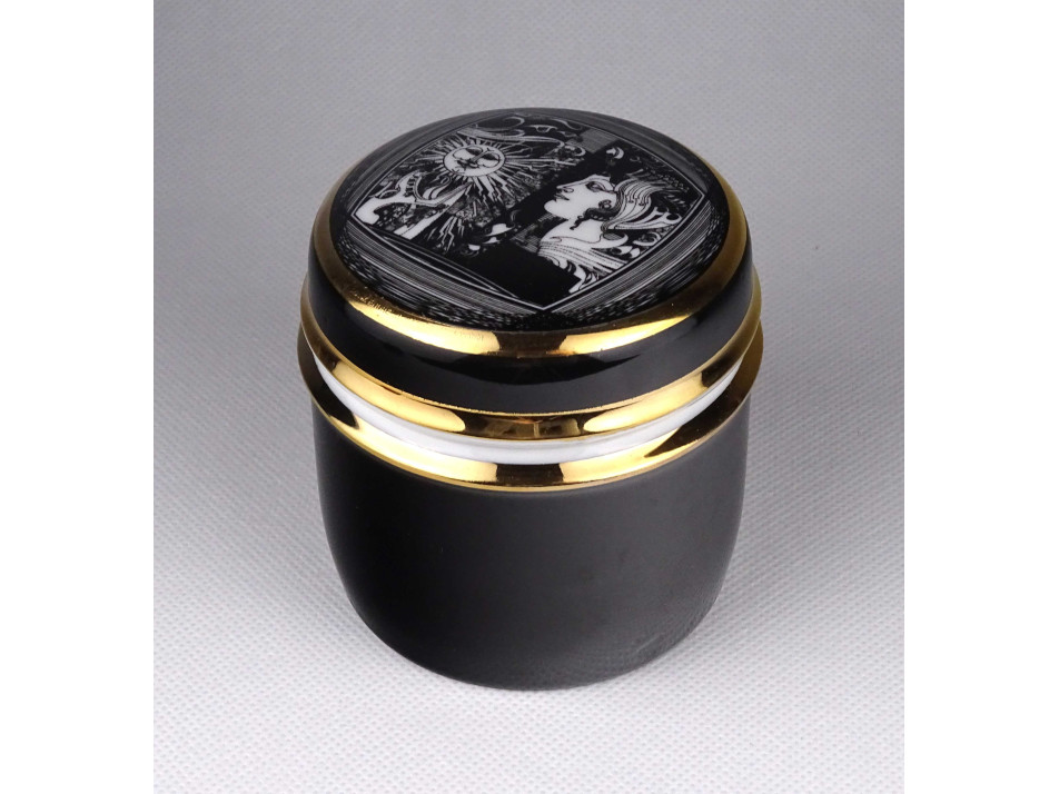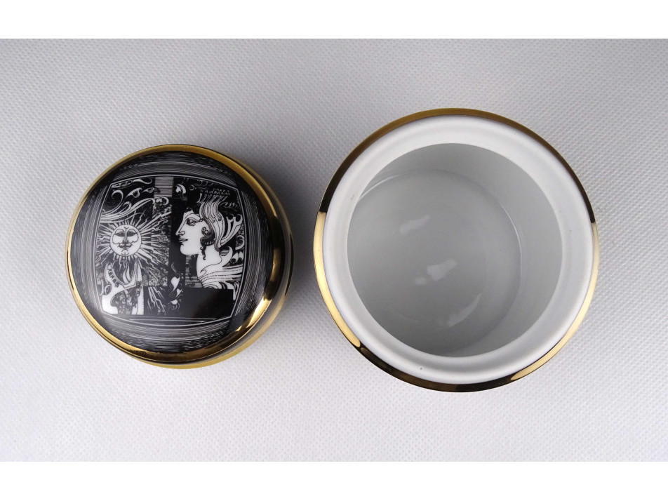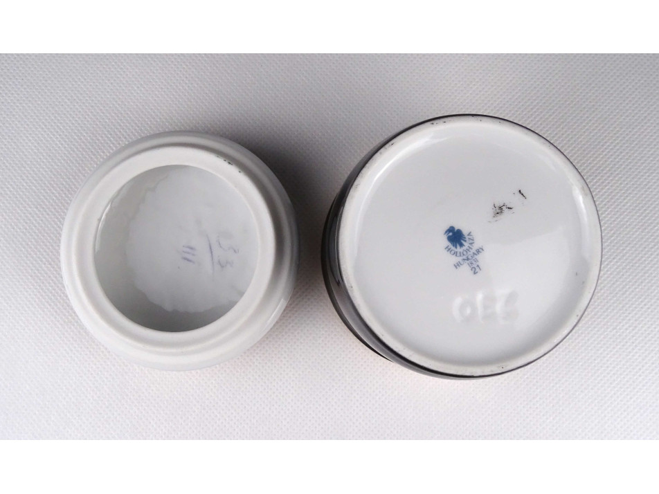 Hibátlan állapotú porcelán bonbonier. Fedelén Szász Endre által készített motívumok láthatók.