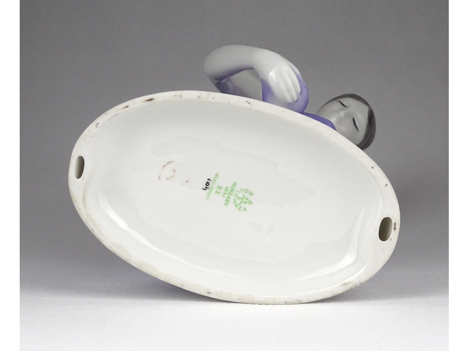Hollóházi porcelán lila ruhás vízmerítő nő szobor