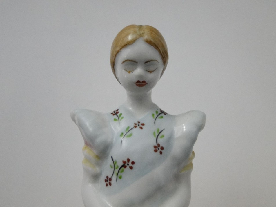 Régi hollóházi porcelán menyecske 17 cm