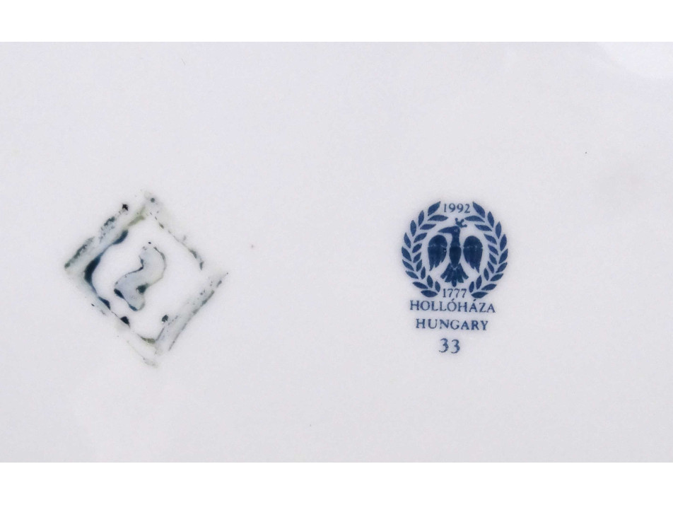 Hibátlan állapotban lévő, jelzett Hollóházi Hajnalka mintás 6 személyes porcelán süteményes tányér, kistányér készlet.