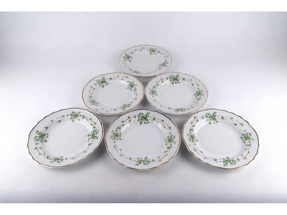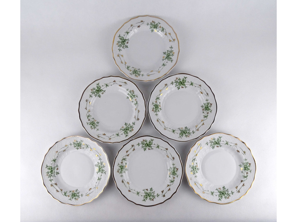 Hajnalka mintás aranyozott Hollóházi porcelán süteményes tányér készlet 6 darab