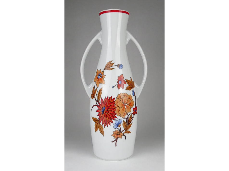 Őszi virágos nagyméretű Hollóházi porcelán váza 36.5 cm