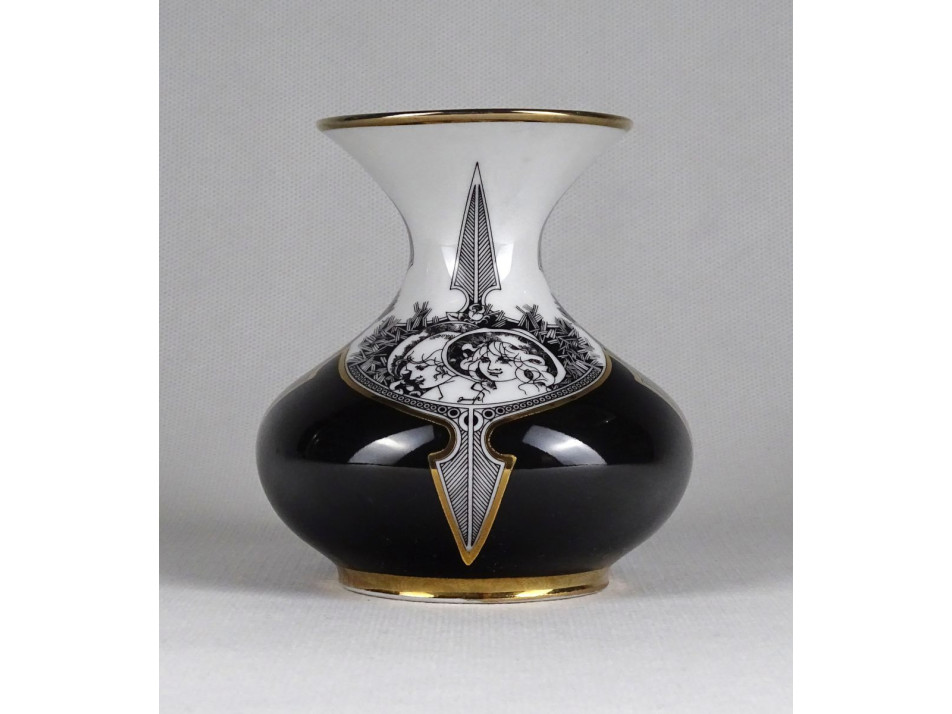 Hibátlan állapotú, jelzett, arannyal gazdagon díszített, fekete-fehér asztali dísz váza.