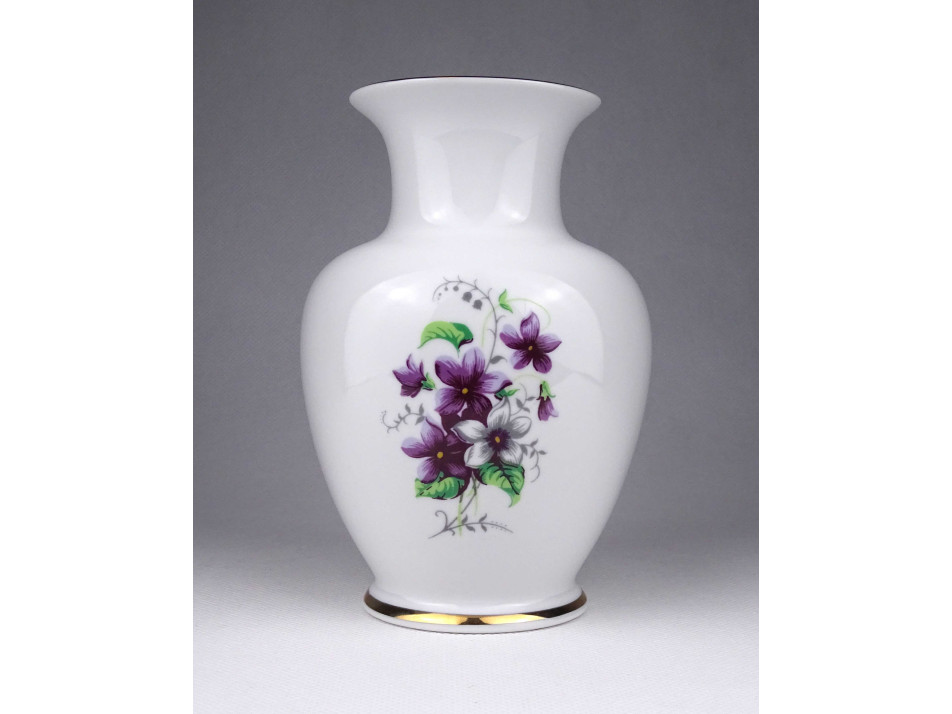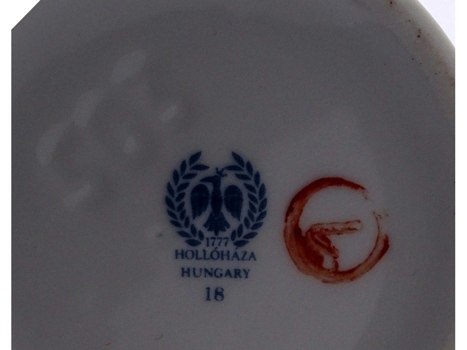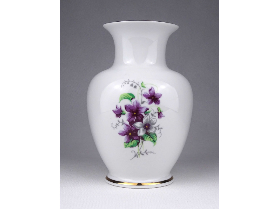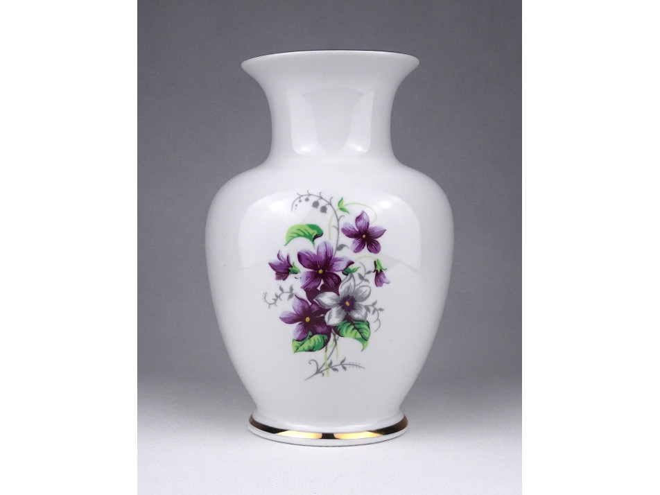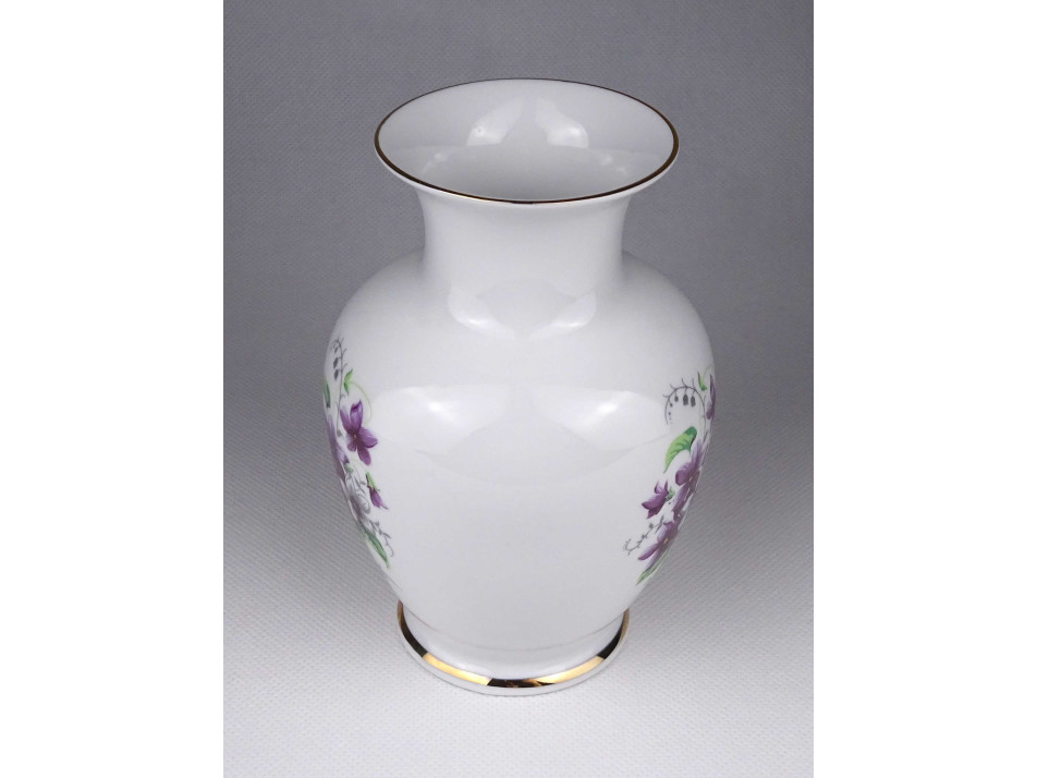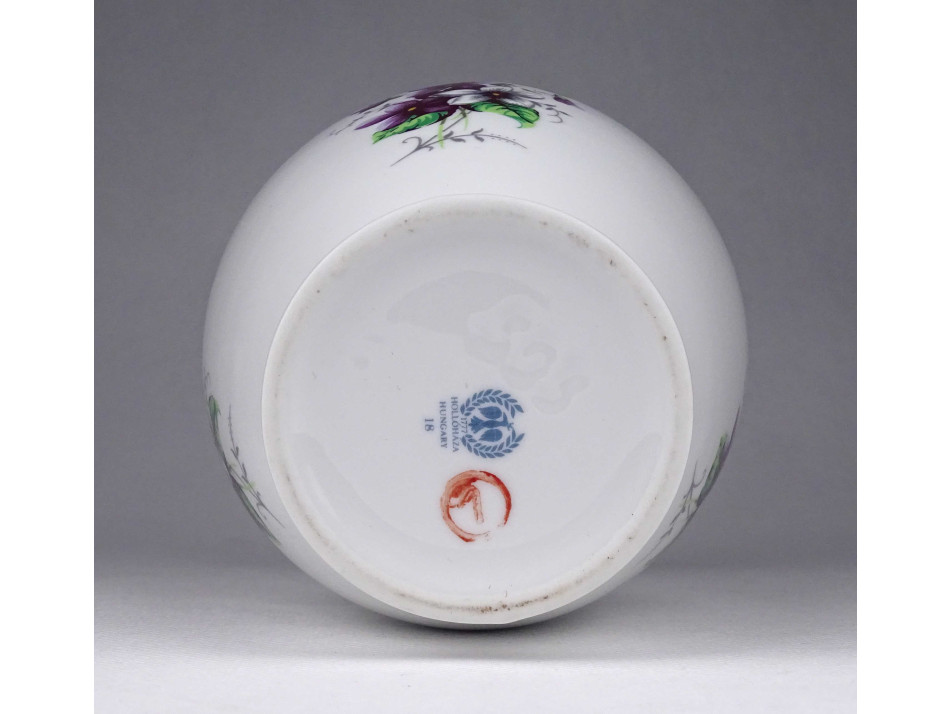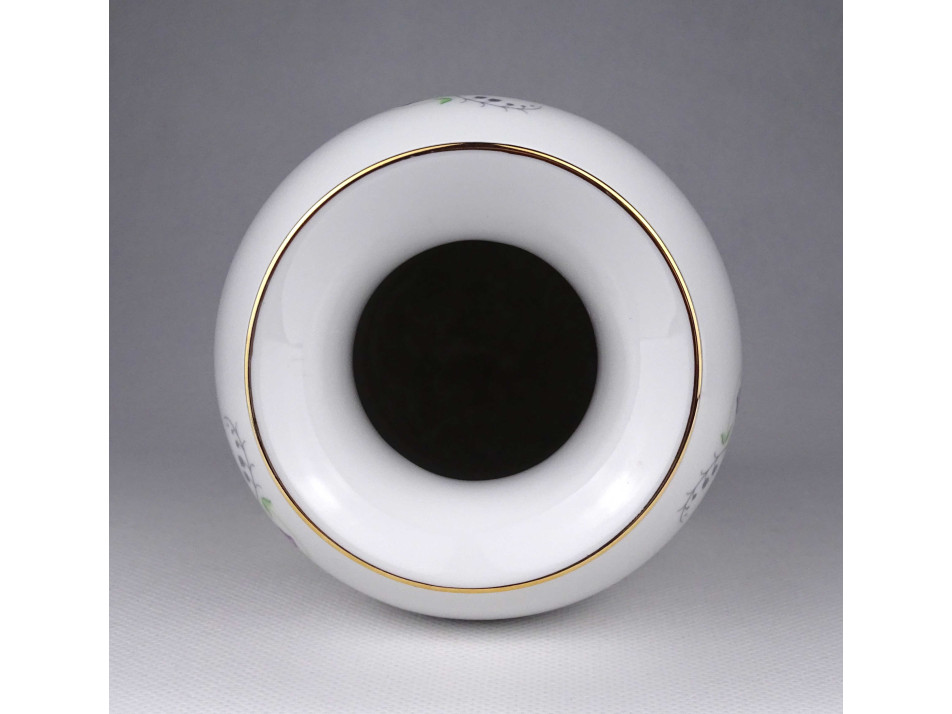 Régi, hibátlan állapotú, jelzett, aranyozott szélű, virágdíszes, öblös Hollóházi porcelán váza, díszváza.