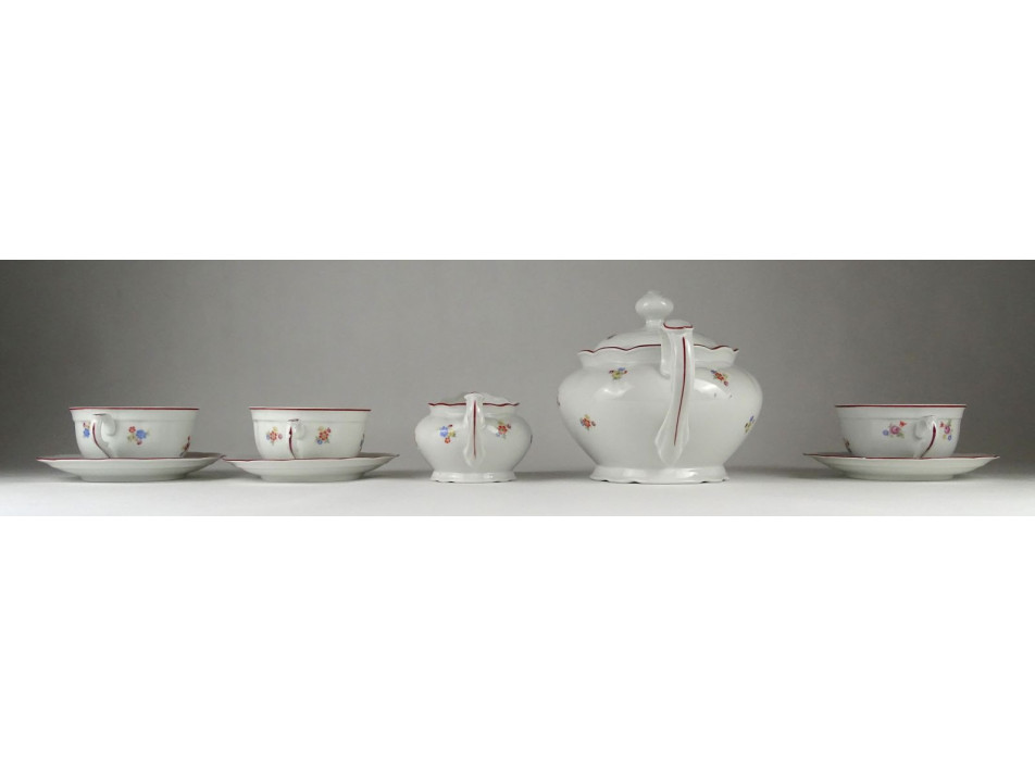 Régi, szép állapotú, jelzett, virágmintás Meisseni porcelán teáskészlet.