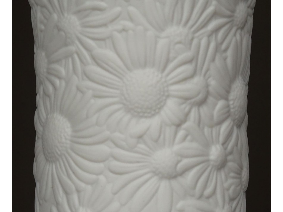Hibátlan állapotú, fehér matt (Bisquite), margarétás dombormintával díszített, studio linie porcelán váza.