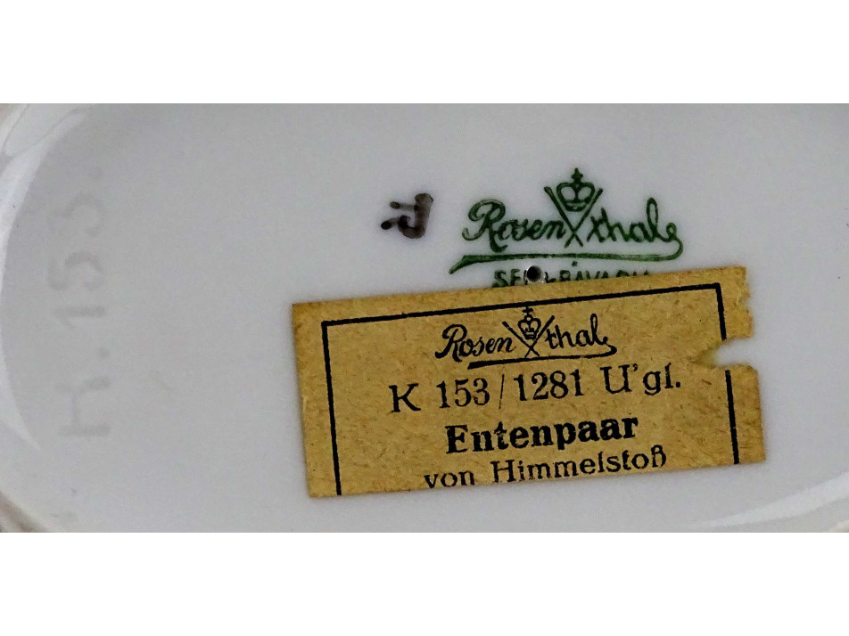 Hibátlan állapotú, talapzaton álló, jelzett régi szépen kidolgozott porcelán kacsapár.
