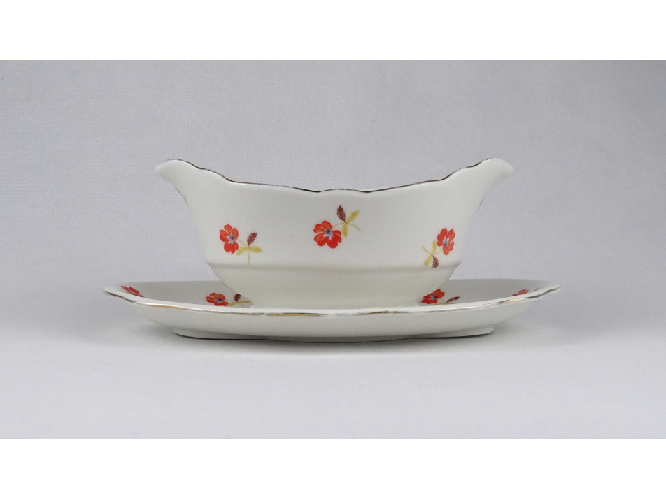 Régi jelzett Hüttl Tivadar EPIAG cseh porcelán szószos tálka kanállal