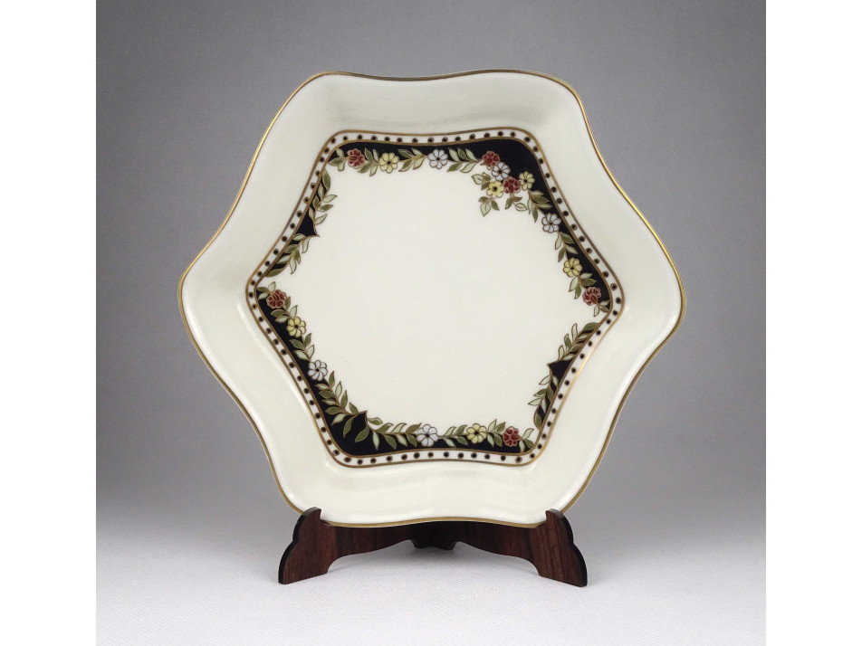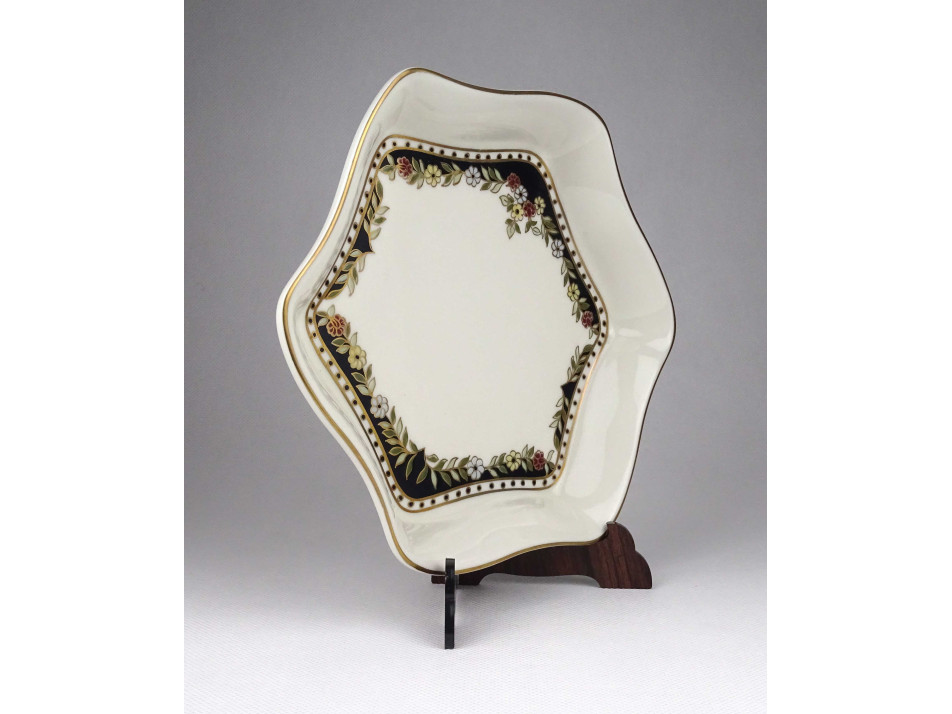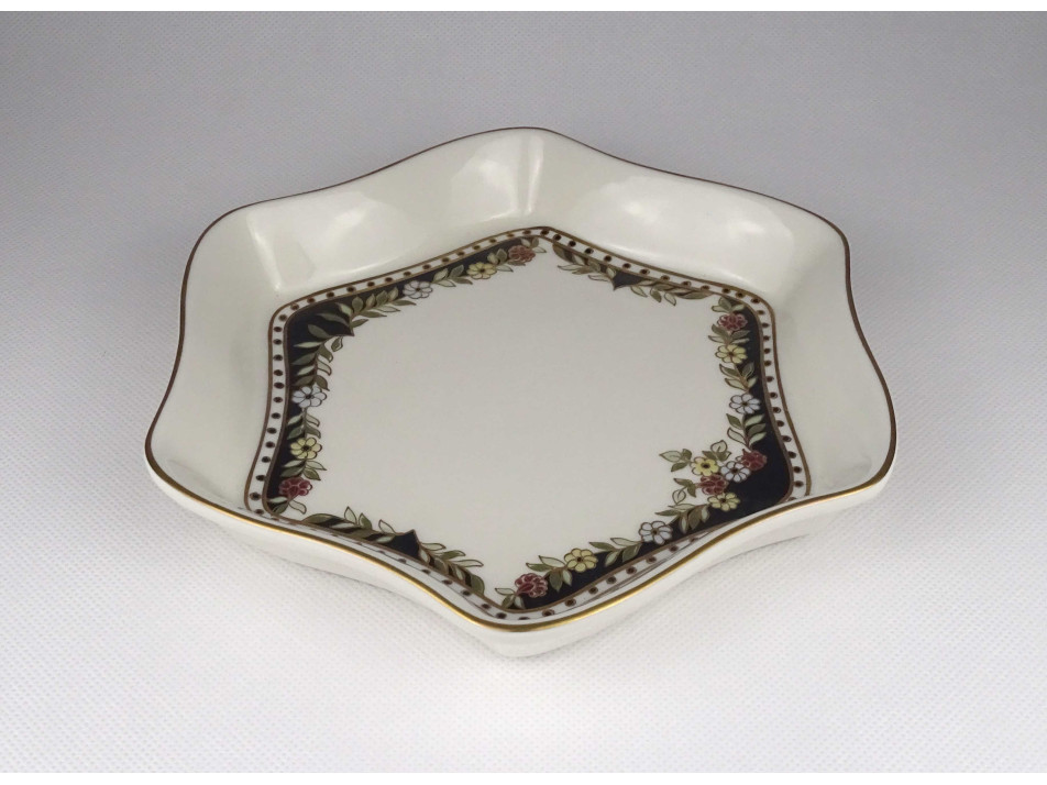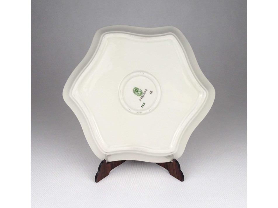 Hibátlan állapotú, hatszög alakú, vajszínű, Sissy mintás Zsolnay porcelán kínáló tál, asztalközép.