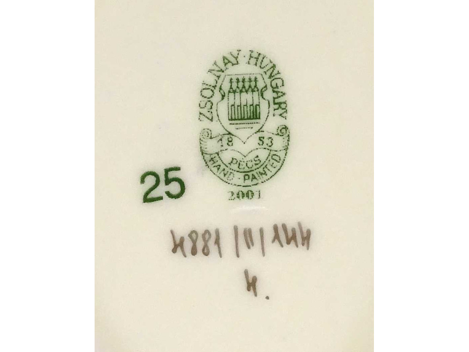 Alján zöld színű Zsolnay öttornyú márkajelzés:
