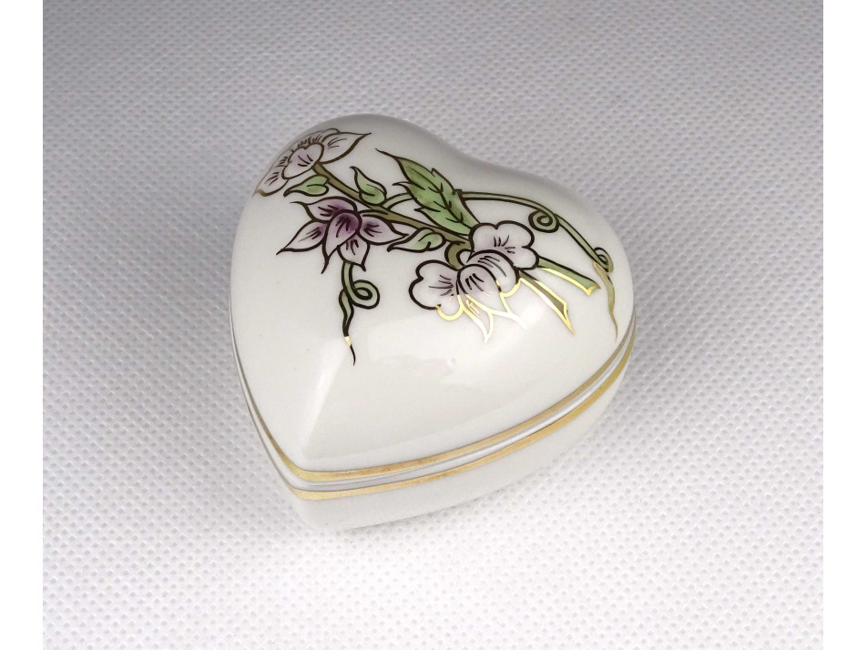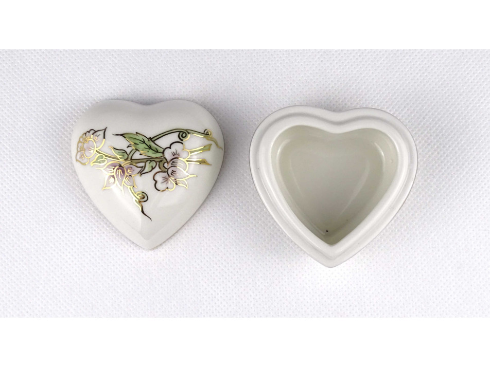 Szív alakú vajszínű Zsolnay porcelán bonbonier