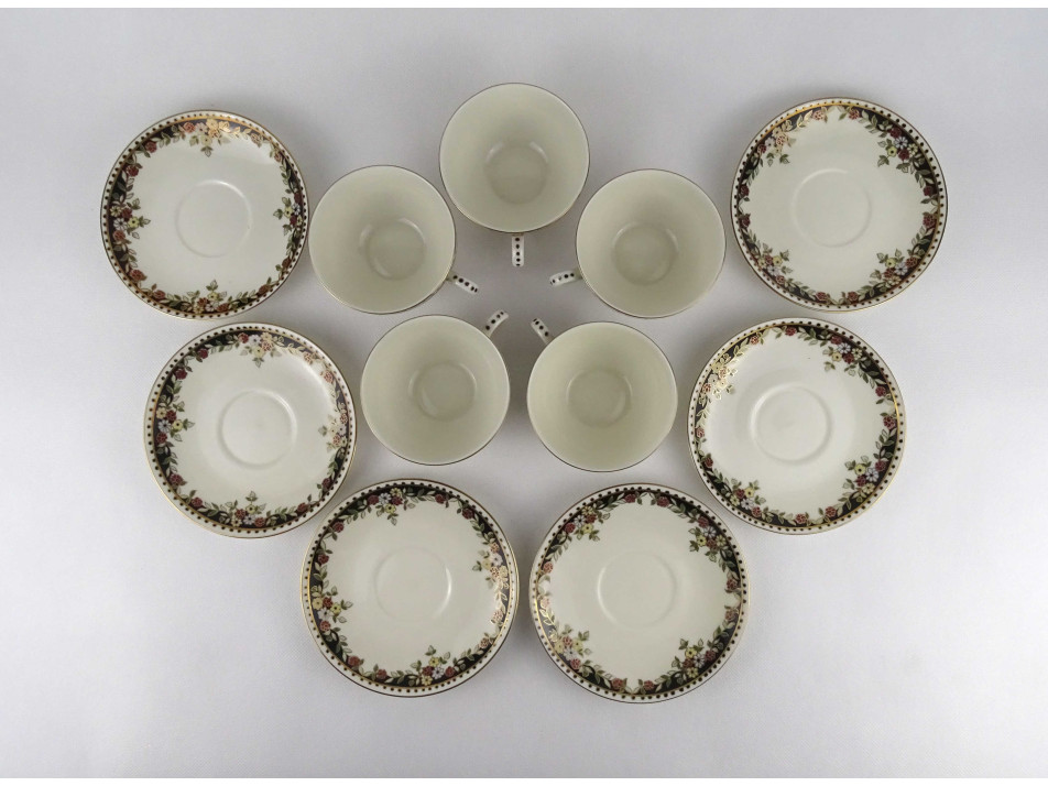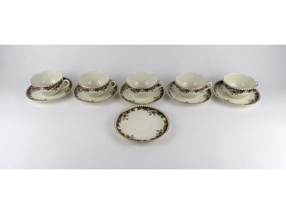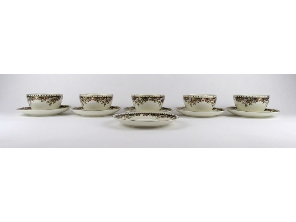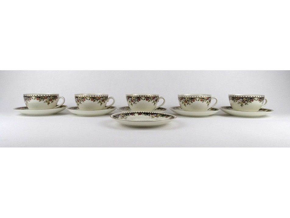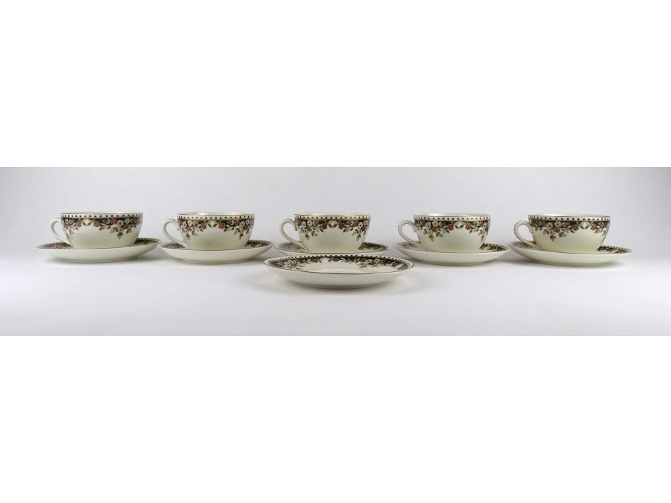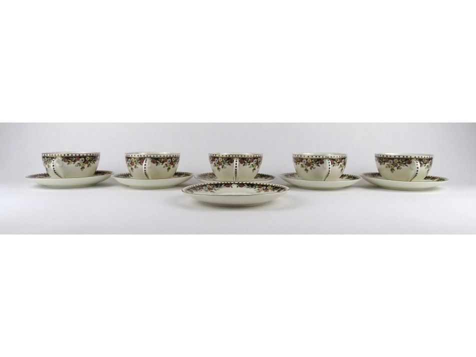 Hibátlan állapotú, vajszínű, Sissy mintás Zsolnay porcelán 5 személyes, 11 darabos teás csésze készlet.