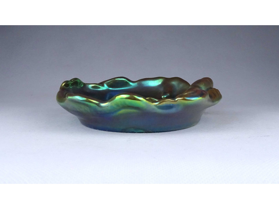Régi zöld eozin mázas Zsolnay porcelán rákos tál 15 cm