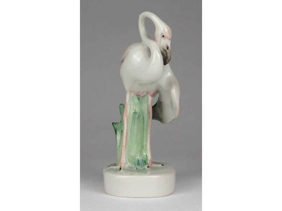 Hibátlan állapotú, jelzett régi Zsolnay porcelán flamingó figura talapzaton.