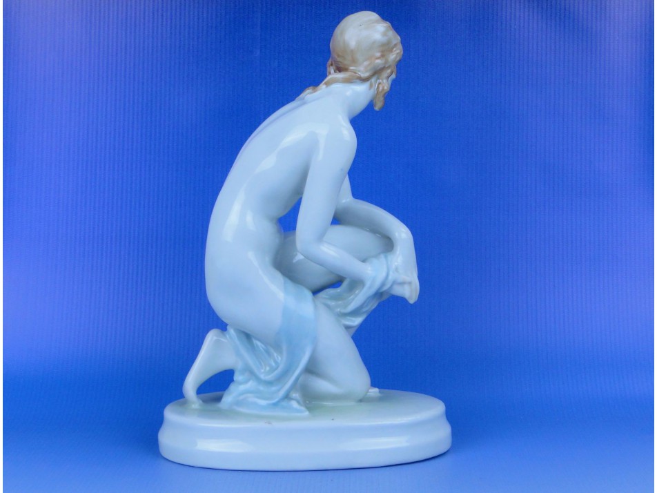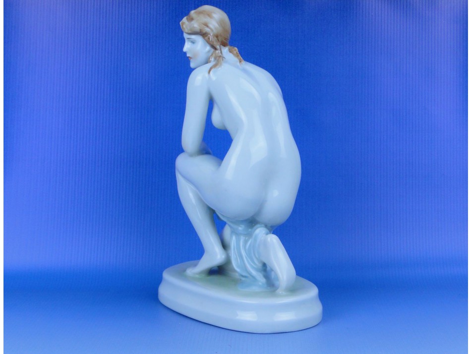 Hibátlan állapotú, talapzaton álló, térdelő egészalakos női akt szobor.