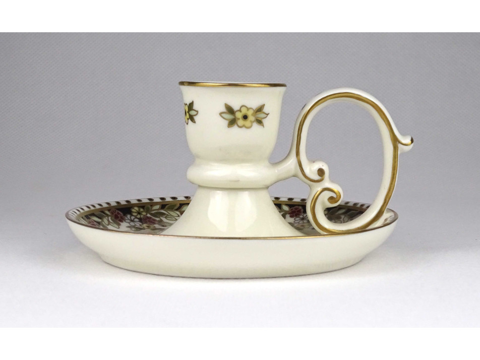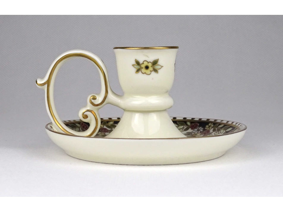Hibátlan állapotú, vajszínű, Sissy mintás Zsolnay porcelán gyertyatartó. Aranyozott sétáló gyertyatartó.