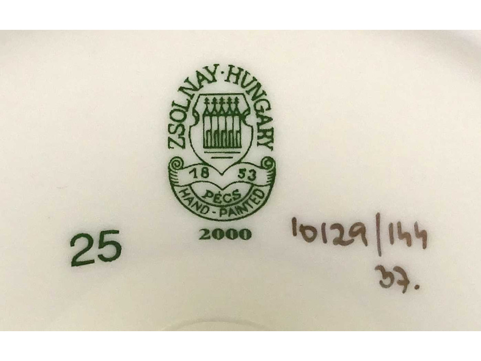 Alján zöld Zsolnay öttornyú porcelán márkajelzés: