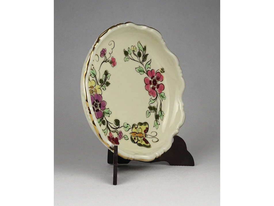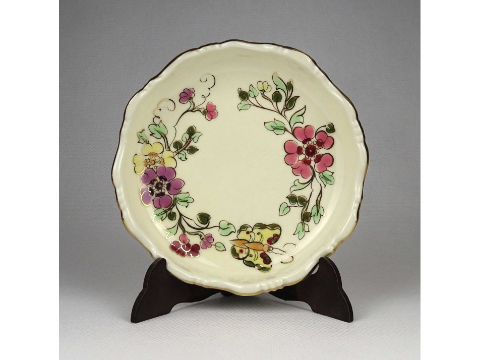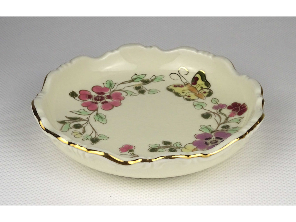 Vajszínű pillangós Zsolnay porcelán tálka hamutál 12.5 cm
