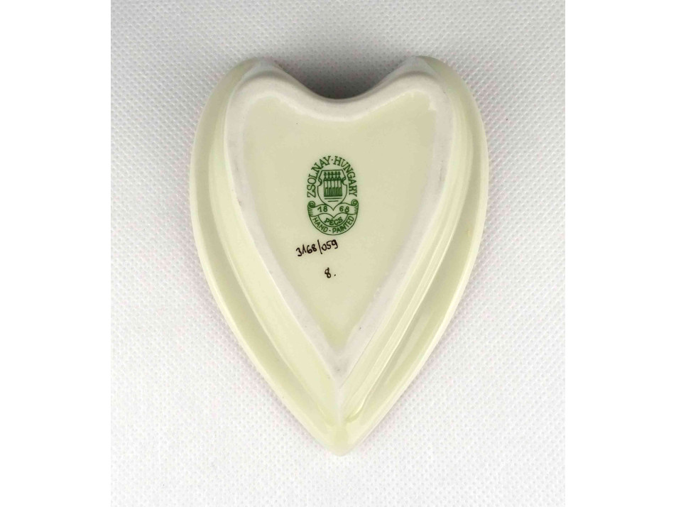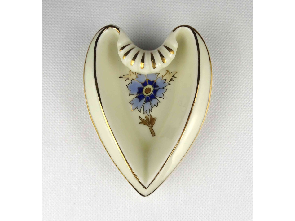 Vajszínű búzavirág mintás Zsolnay porcelán szív alakú hamutál