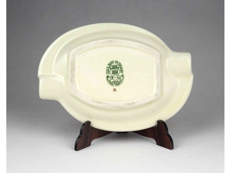 Virágmintás vajszínű Zsolnay porcelán hamutál