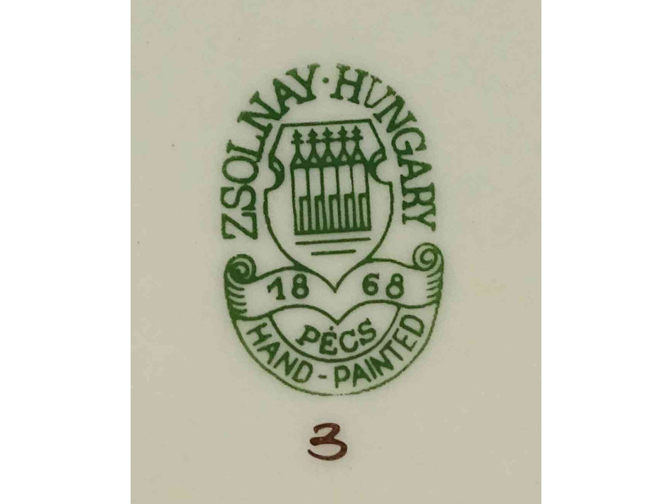 Alján zöld Zsolnay-Pécs öttornyú márkajelzés: