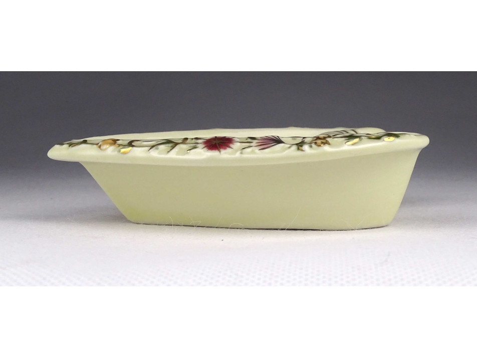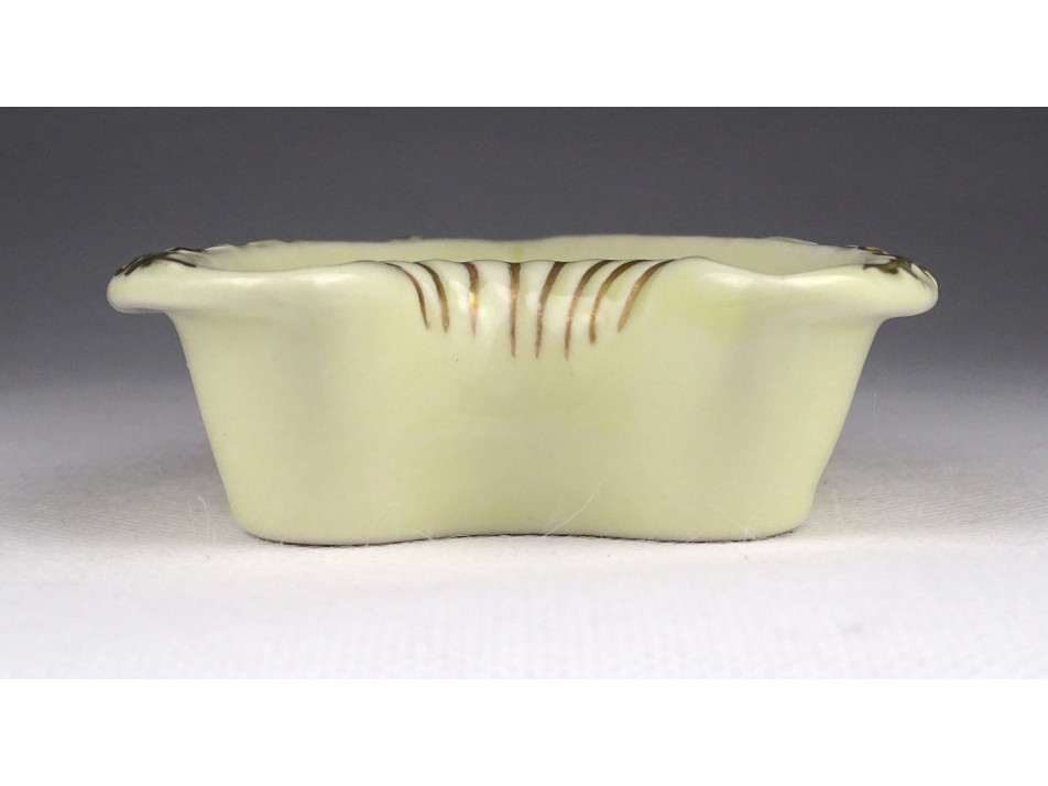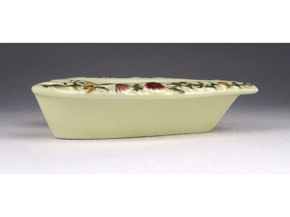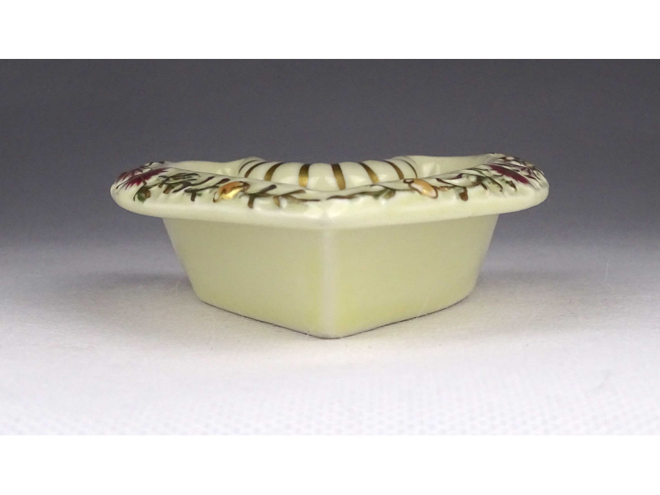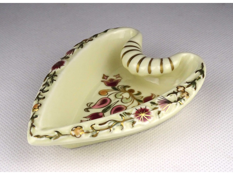 Régi, hibátlan állapotú, jelzett, vajszínű, virág mintás, gazdagon aranyozott szív alakú Zsolnay porcelán hamutál.
