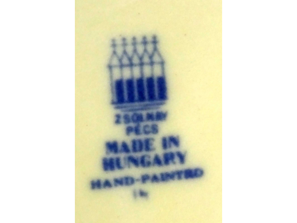 Alján kék öttornyú Zsolnay márkajelzés: