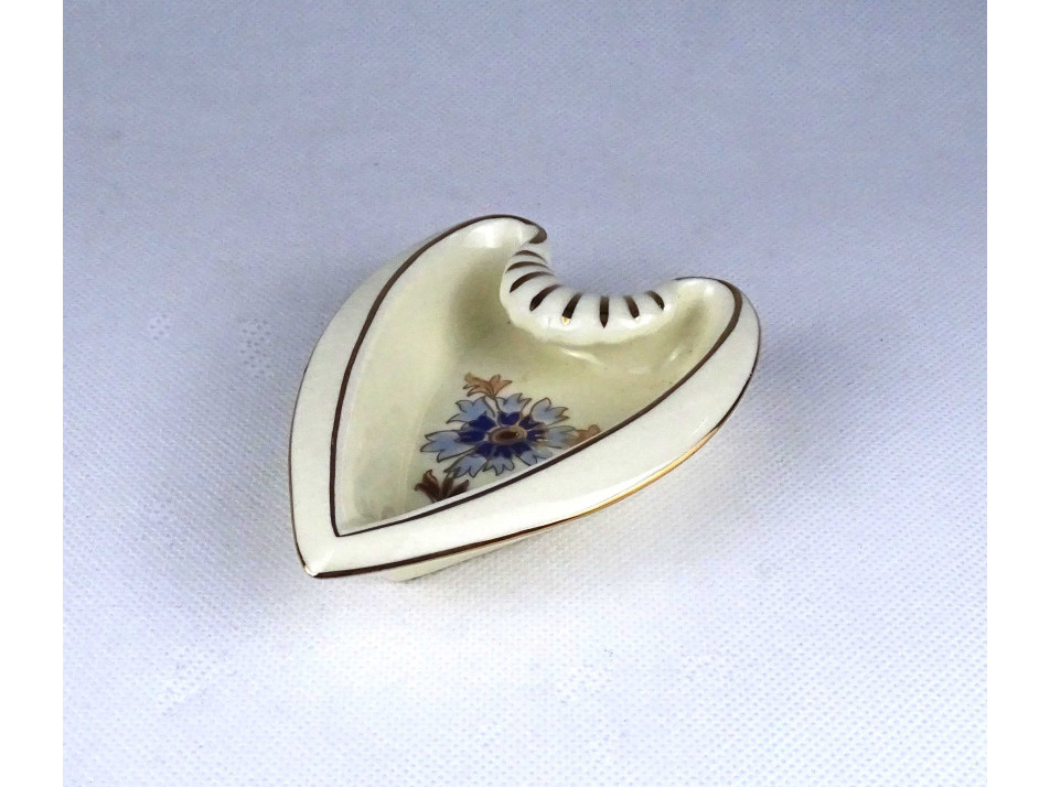 Vajszínű búzavirág mintás szív alakú Zsolnay porcelán hamutál