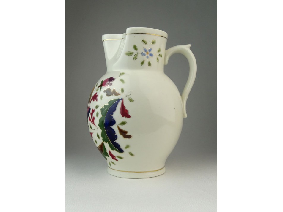 Antik, szép állapotú, nagyméretű, kézzel festett, aranyozott fajansz kancsó az 1800-as évek végéről.