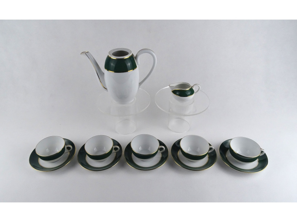 Zsolnay Olíva zöld-fehér, aranyozott porcelán kávés készlet 5 személyes