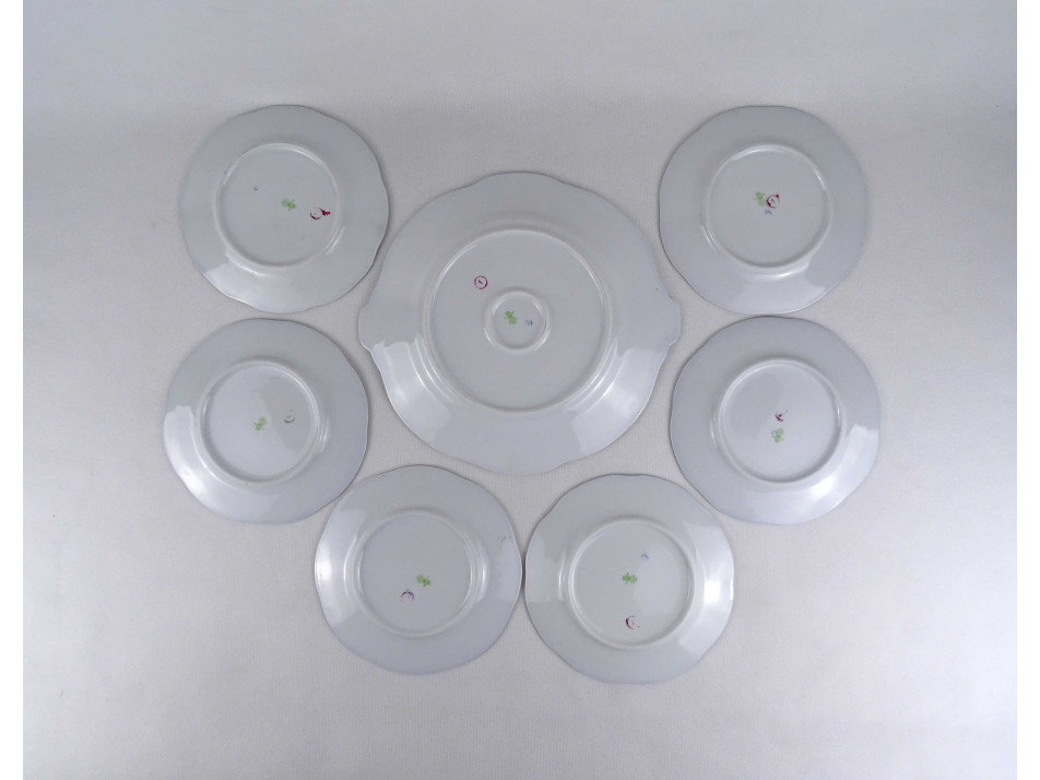 Hibátlan állapotú, Zsolnay porcelán Pompadour süteményes készlet gazdagon aranyozva, kobaltkék mázzal.