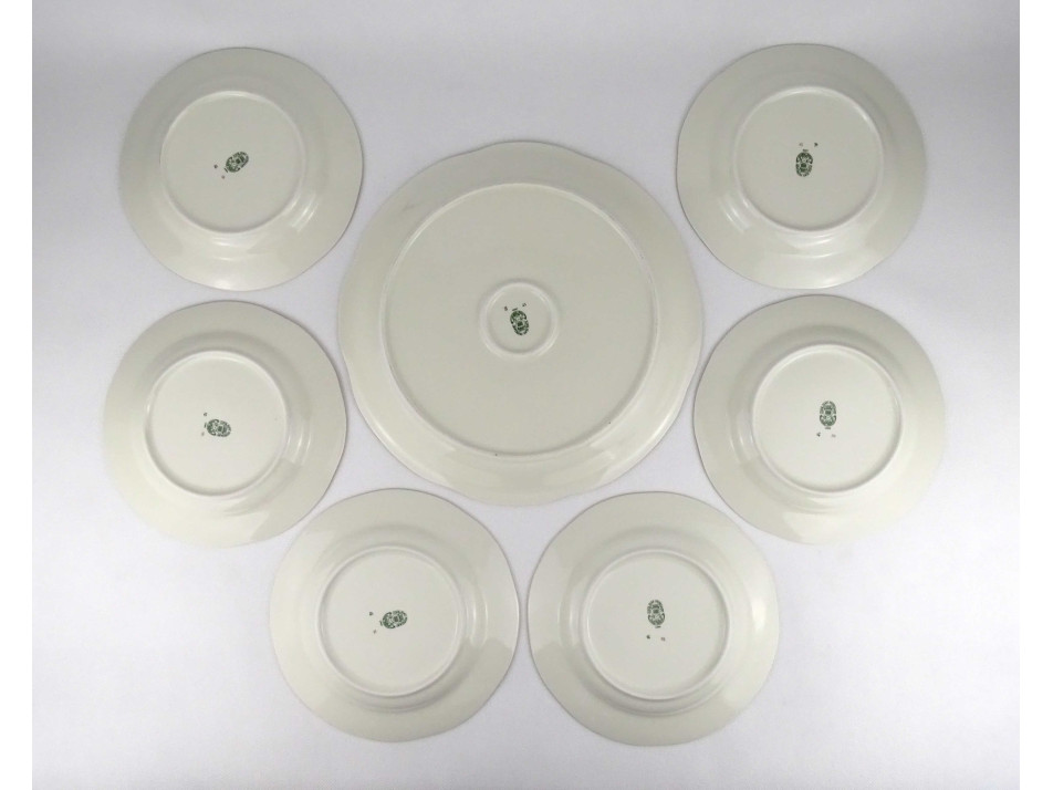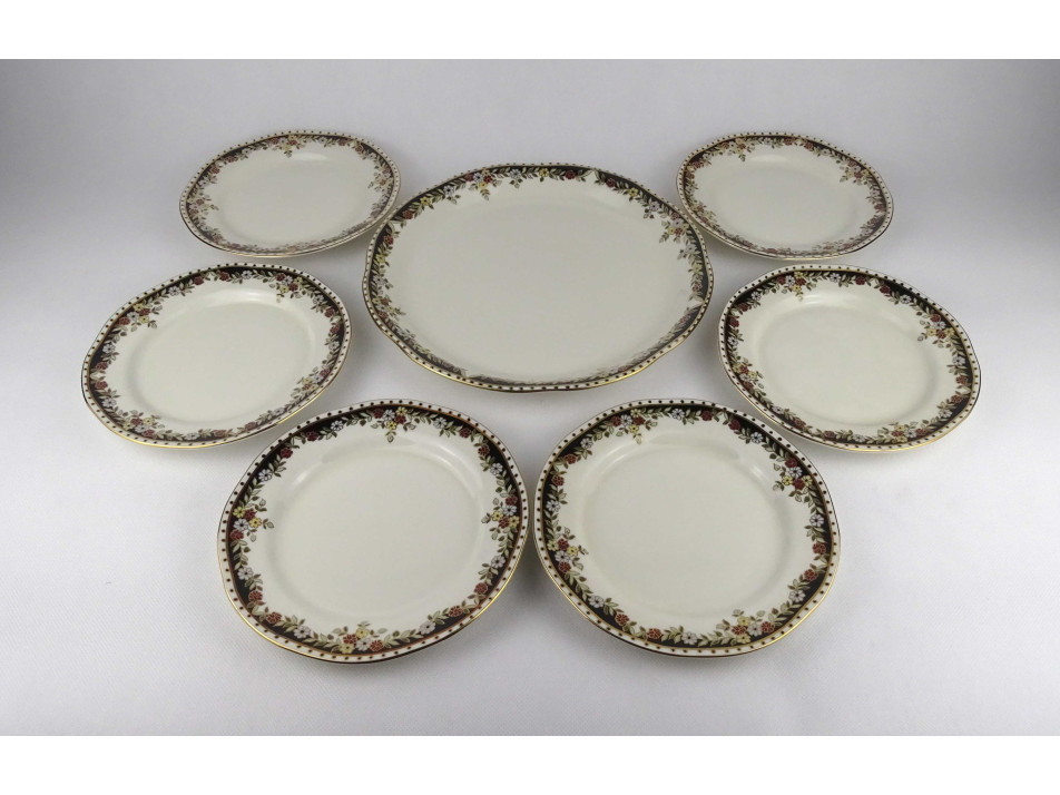 Vajszínű, Sissy mintás, 6 személyes Zsolnay porcelán süteményes készlet