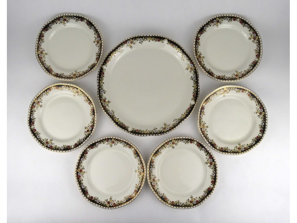 Hibátlan állapotú, vajszínű Sissy mintás Zsolnay porcelán süteményes készlet, gazdagon aranyozva.