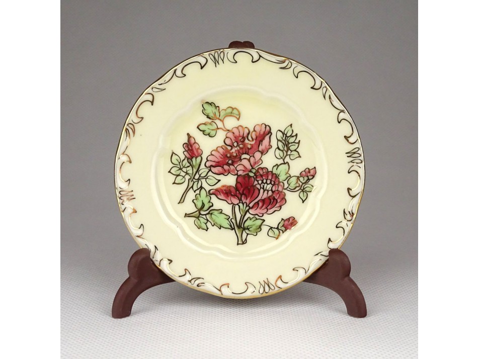 Vajszínű Zsolnay porcelán virágos tányérka 8.5 cm