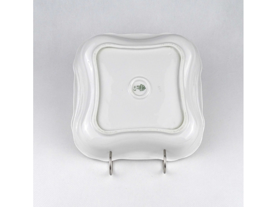 Régi, hibátlan állapotú szögletes alakú, magasfalú virágmintás porcelán tésztástál.