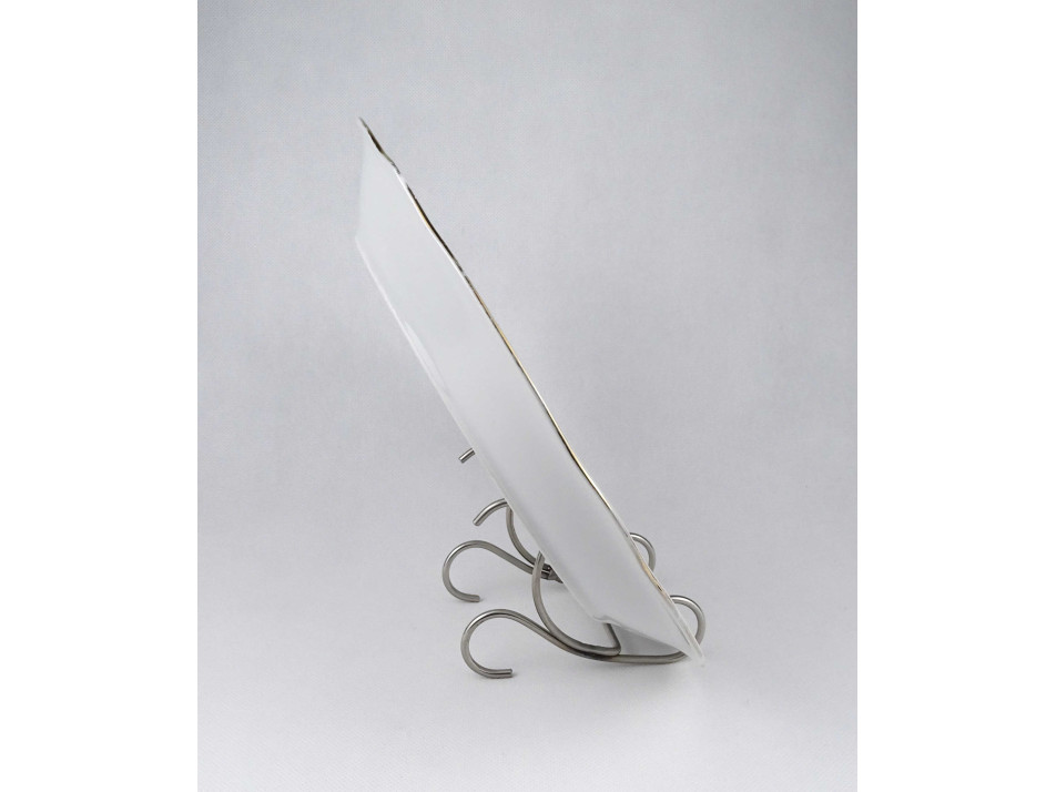 Régi, kerek, aranyozott szélű, apró virágmintás porcelán süteményes tál, kínáló tál, tortatál. Szélén egy apró, valószínűleg a gyártás során keletkezett sérülés látható. Lásd fotó.