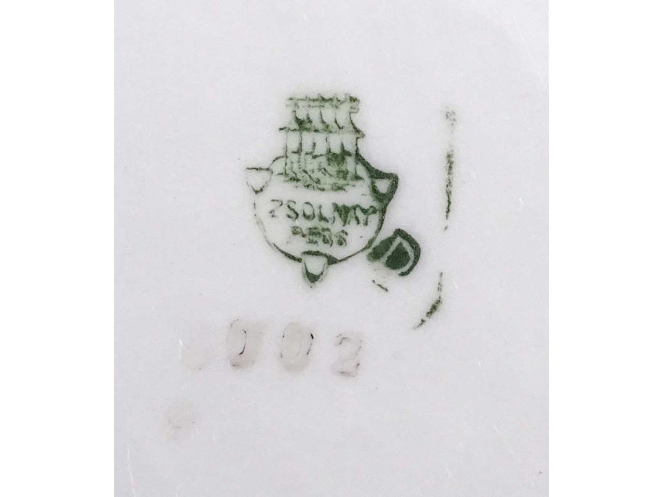 Aljukon zöld színű Zsolnay öttornyú márkajelzés: