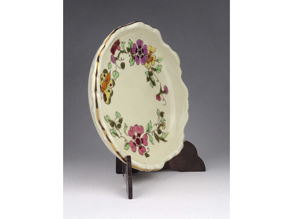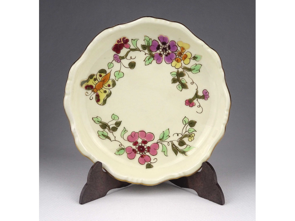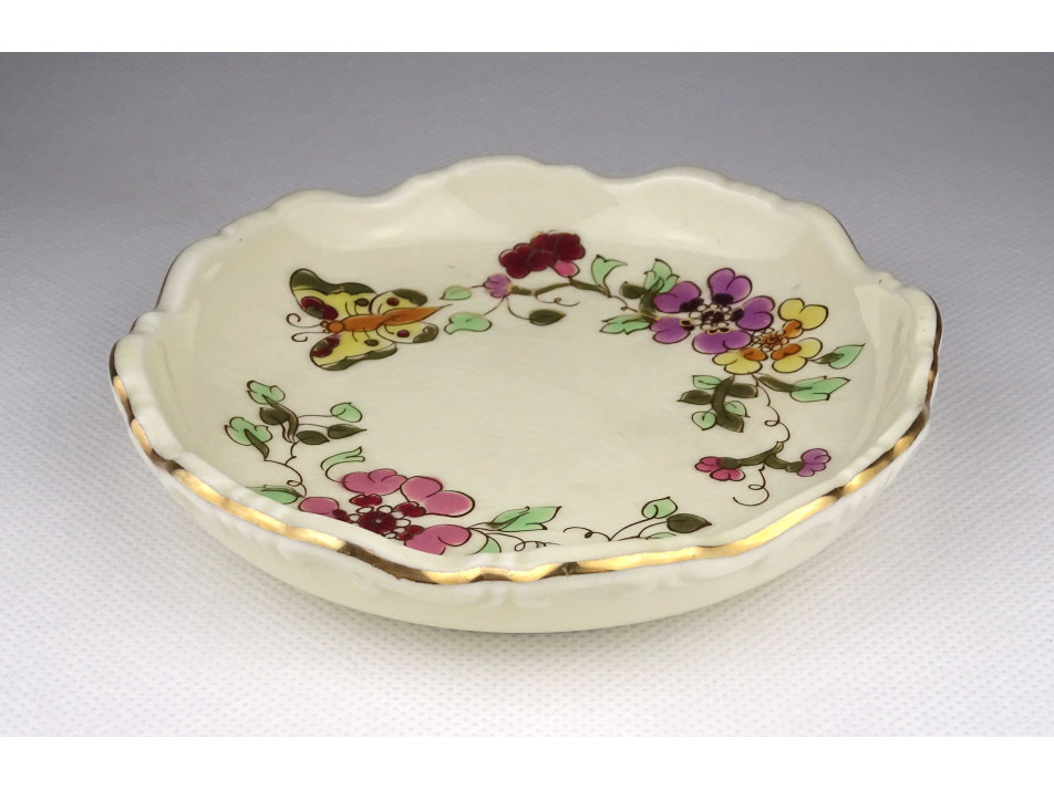 Vajszínű pillangó mintás Zsolnay porcelán tálka hamutál 12.8 cm