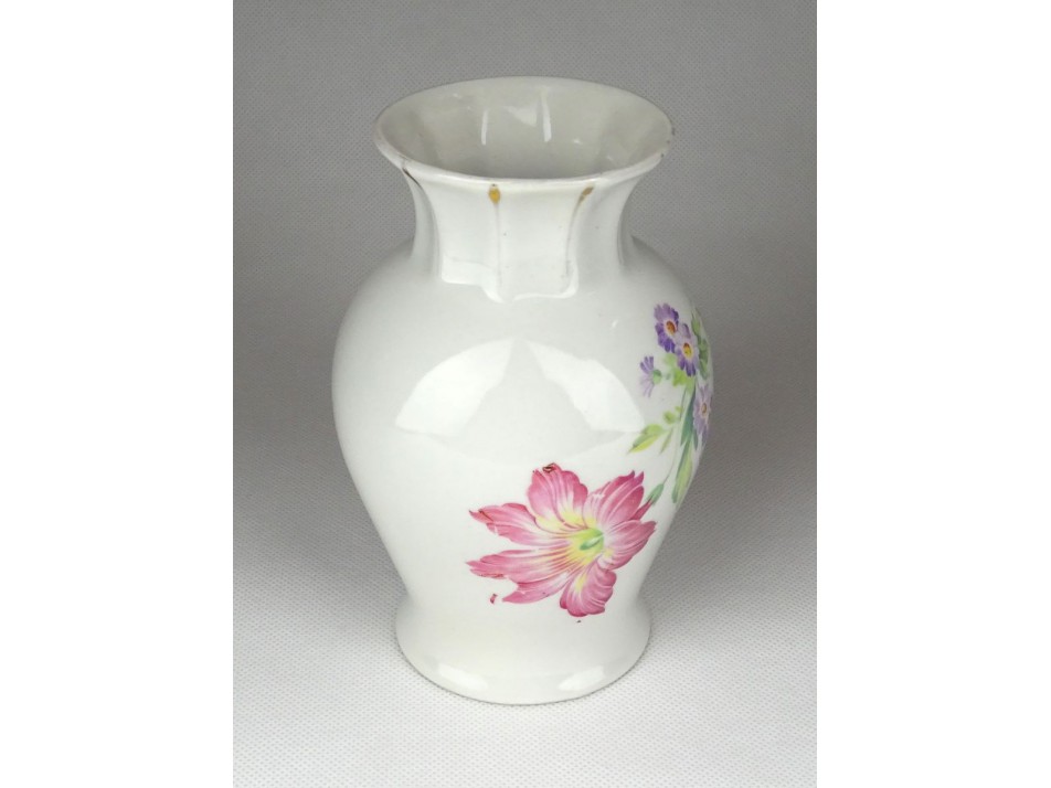 Hibátlan állapotú, virágokkal díszített kis méretű öblös porcelán váza.