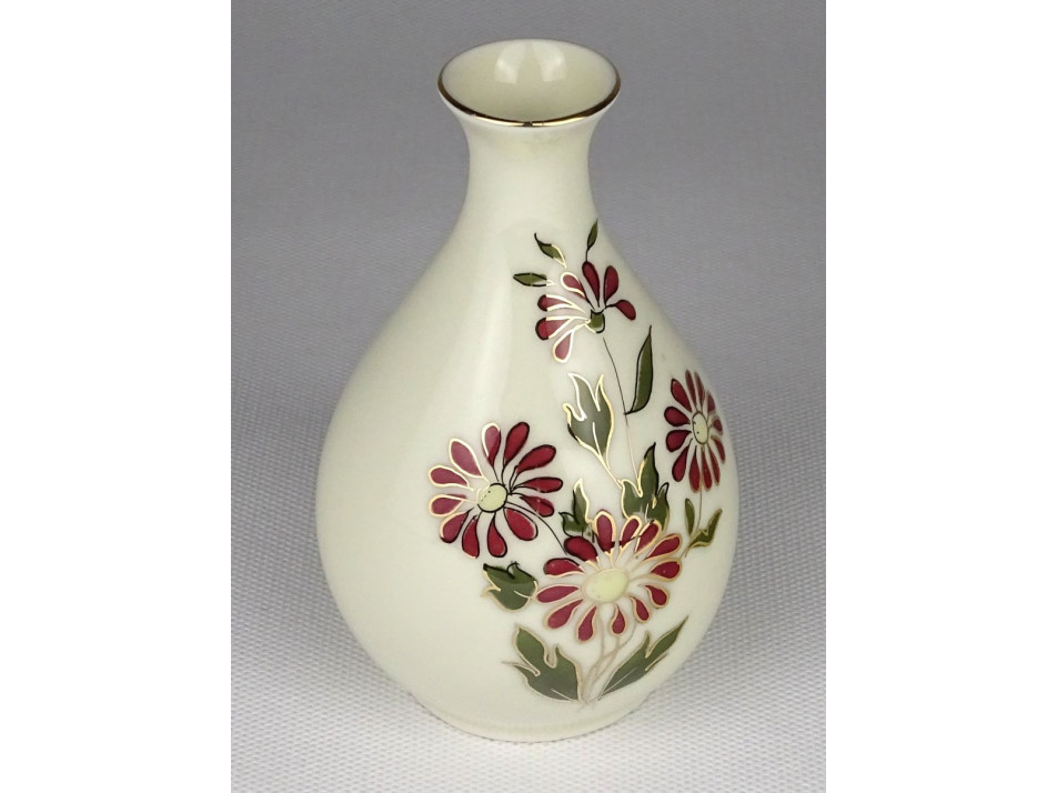 Hibátlan állapotú, vajszínű Zsolnay virágmintás aranyozott porcelán váza, díszváza.