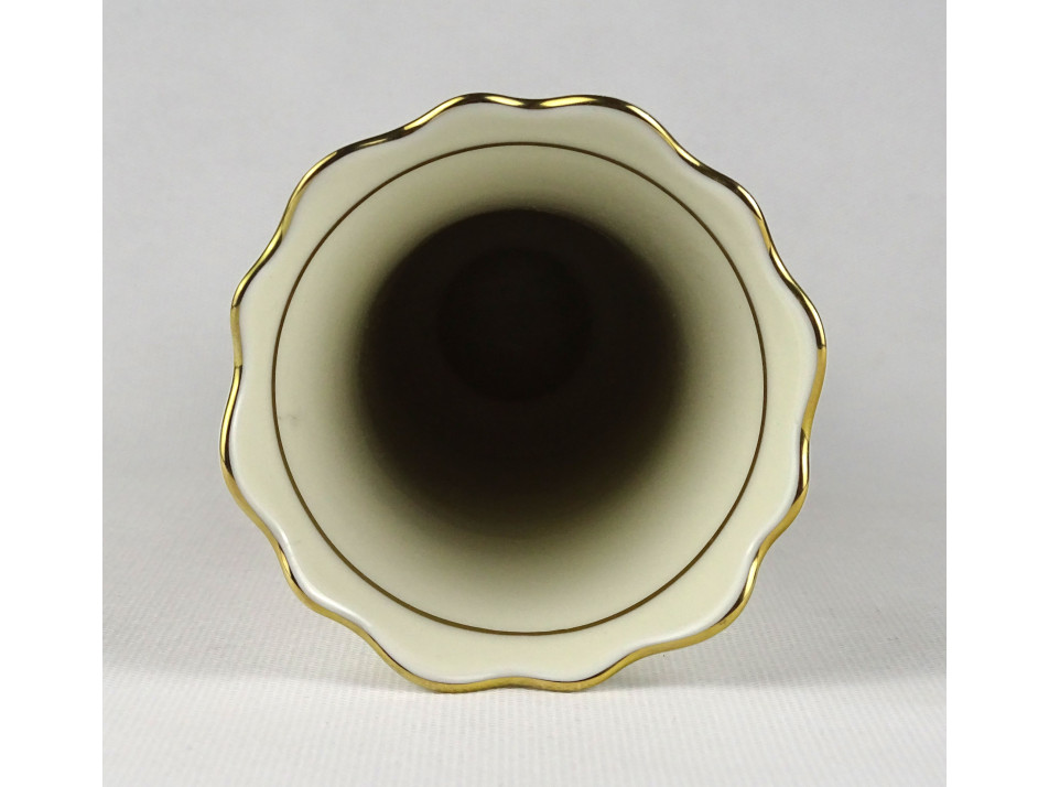 Gazdagon aranyozott virágmintákkal díszített, hibátlan állapotú vajszínű Zsolnay porcelán váza.