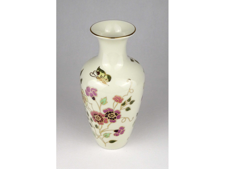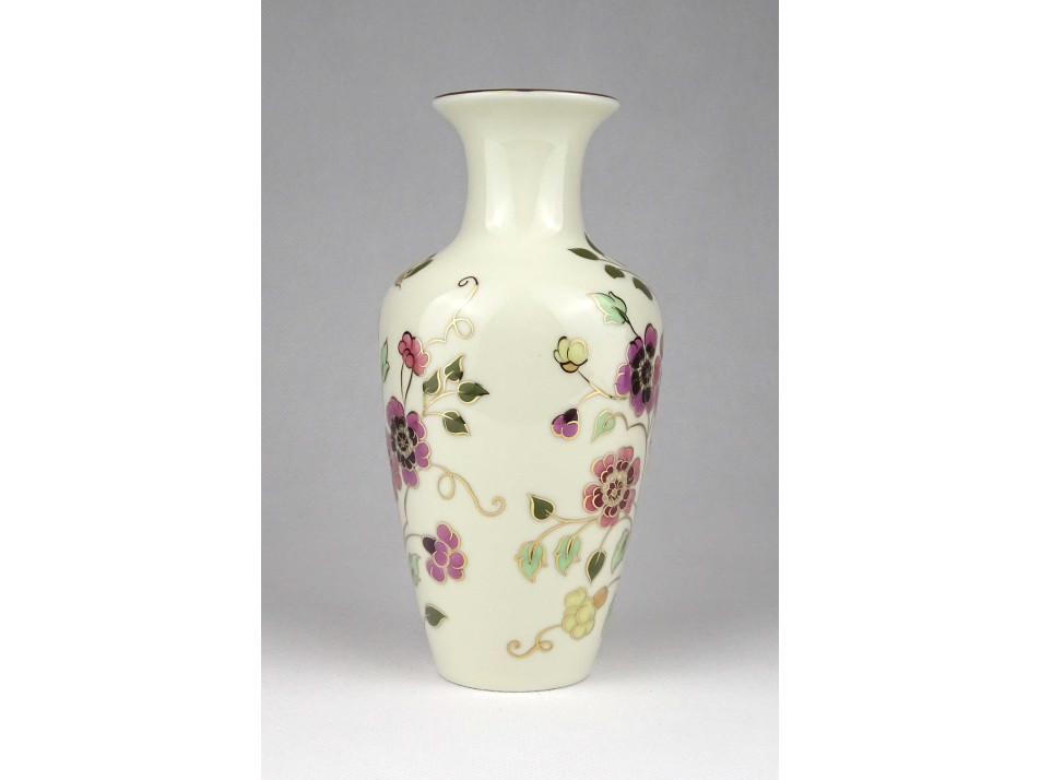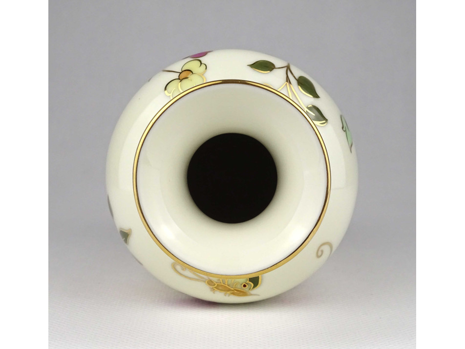 Hibátlan állapotú, gazdagon aranyozott virágmintás, pillangós Zsolnay porcelán váza.