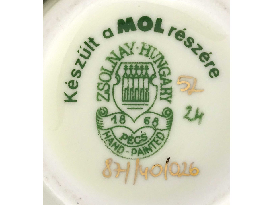 Alján zöld színű felirat és Zsolnay márkajelzés: